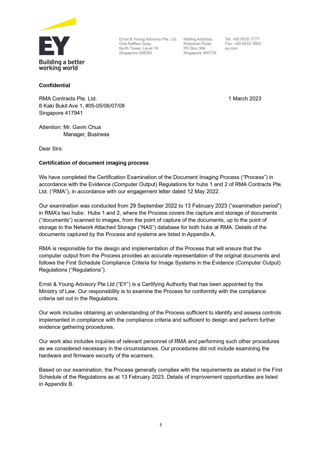 Evidence Act Certification